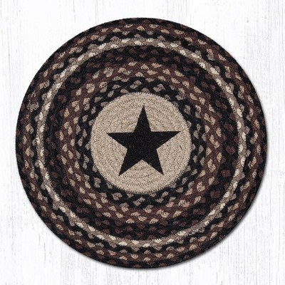 Earth Rugs Black Star Printed Round Placemat 15"x15" Handcrafted Jute Rustic Farmhouse Lodge Dining Table Accent Mat