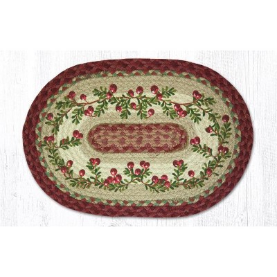Earth Rugs Cranberries Oval Placemat – 13"x19" Hand-Braided Natural Jute Table Mat