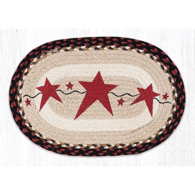 Earth Rugs Primitive Star Burgundy Oval Placemat 13"x19" Rustic Farmhouse Jute Table Decor