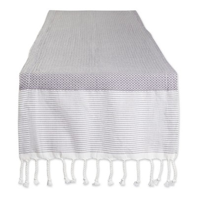 Design Imports Dobby Striped Fringe Ribbed Table Runner