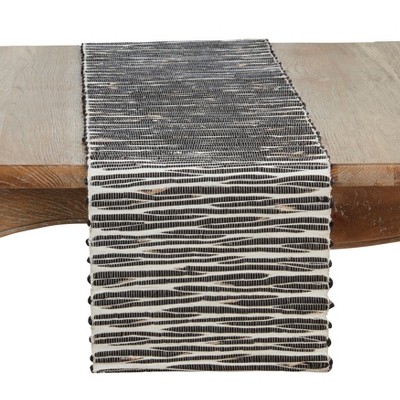 Saro Lifestyle Dining Table Runner With Stripe Design, Black, 16" x 72"