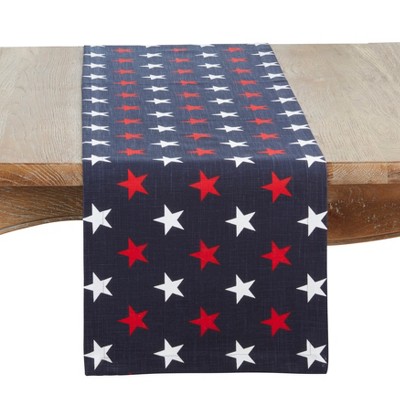 Saro Lifestyle Patriotic Americana Stars Table Runner, 14"x72", Blue