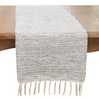 Saro Lifestyle Boho Chic Stripe Chindi Table Runner with Fringe, 16"x72", Blue