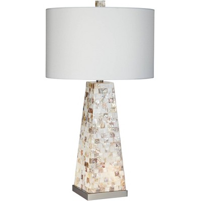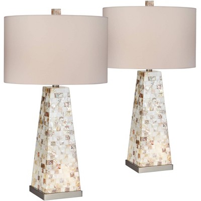Possini Euro Design Coastal Table Lamps 29" Tall Set of 2 with Nightlight Mother of Pearl Handmade White Drum Shade for Bedroom (Color May Vary)