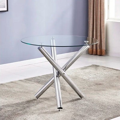 Karl Home Round Glass Top Metal Base Dining Table