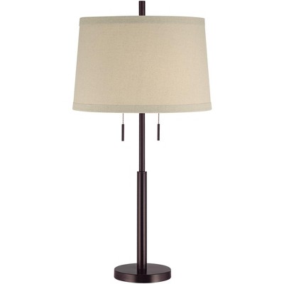 Regency Hill Traditional Table Lamp 31 1/2" Tall USB Charging Port Urn Bronze Faux Silk Bell Shade for Bedroom Living Room Office