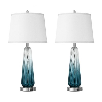 GDFStudio Liora Mercury Glass Table Lamp with 3-Color Temperature Lighting and USB Ports (Set of 2)