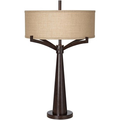 360 Lighting Chalane Rustic Table Lamp 31 1/4" Tall Antiqued Bronze with USB Charging Port Natural Cylinder Shade for Bedroom Living Room Office House