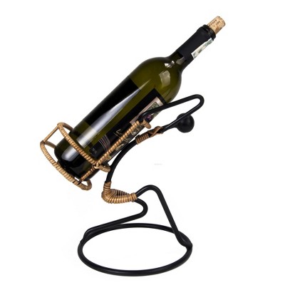 Wine Holder 6.3" – Handcrafted Metal and Rattan – Decorative Tabletop Wine Stand By Old Modern Handicrafts