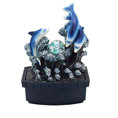 HomeRoots 11" Blue Polyresin Dolphins Tabletop Fountain