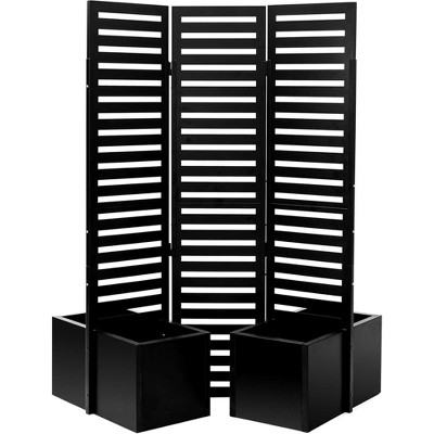 GustoWave 3-Panel Metal Privacy Screen with Planters - Outdoor Garden Room Divider for Patio, Deck or Backyard