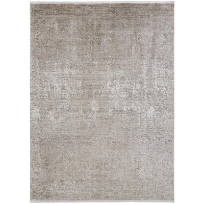 Tan and Ivory Abstract Power Loom Distressed Area Rug With Fringe