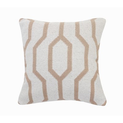 HomeRoots 20" X 20" White And Tan 100% Cotton Geometric Zippered Pillow