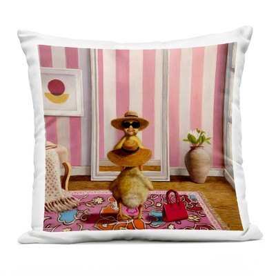 Stupell Industries Tabby Cat Bubble Gum Pink Glasses Pet Indoor Decorative Throw Pillow, 18 x 18