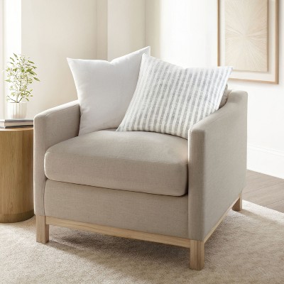 Yarn Dyed Cotton Decor Throw Pillow Cover and Pillow Insert Set in Bengal Stripe Pattern - Becky Cameron, Gray, 20 x 20