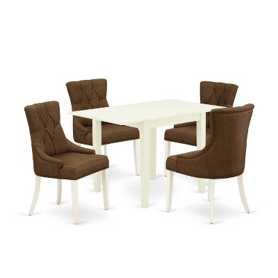 HomeStock 5-Pc Linen White Finish Solid Wood Top - Dining Room Set - Seats 4
