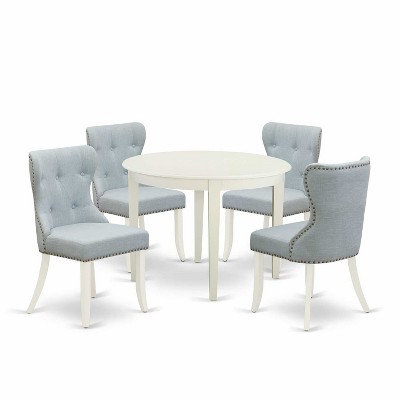 5-Piece Linen White Finish Solid Wood Top - Round Dining Room Set - Seats 4