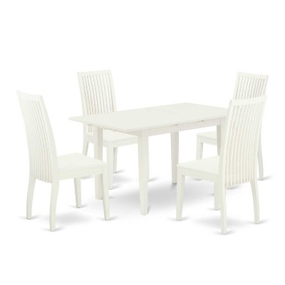 HomeStock 5-Pc Linen White Finish Solid Wood Top - Rectangular Dining Room Set with Butterfly Leaf - Seats 4
