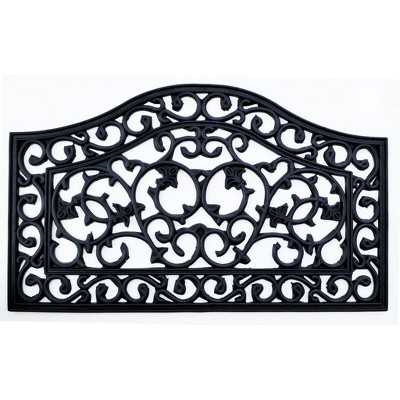 HomeRoots 18" X 30" Beige and Black Rubber and Coir Outdoor Semi Circle Door Mat