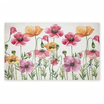 HomeRoots 18" X 30" Green and Pink Coir Abstract Outdoor Door Mat
