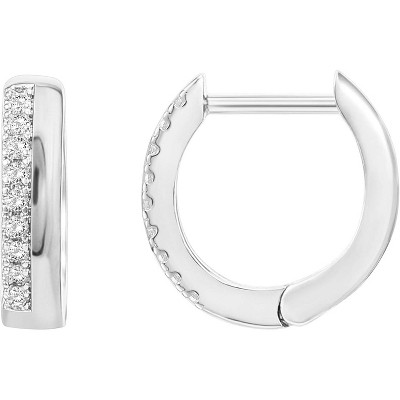 Bella Silver Sterling Silver Baguette CZ Small Hoop Earrings - Silver
