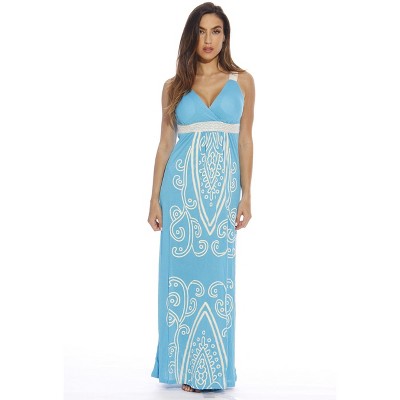 Puff Print Crochet Strap Maxi Dress