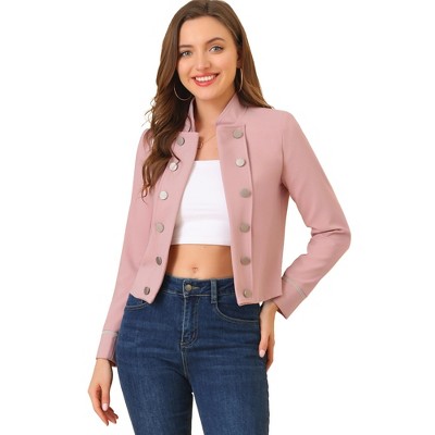 INSPIRE CHIC Women's Faux Suede Cropped Stand Collar Zip-Up Bomber Jackets