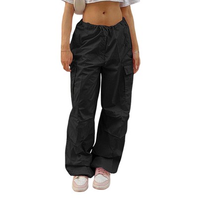 BLUEMING Womens Cargo Pants Women Baggy Parachute Pants Low Waisted Drawstring Wide Leg Pants Festival Outfits