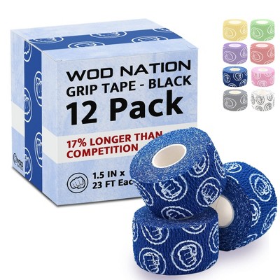 WOD Nation Bulk 24-Pack Weightlifting Hook Grip Tape, Comfortable & Stretchy Athletic Thumb Tape for Exercise (23ft/Roll)- Blue
