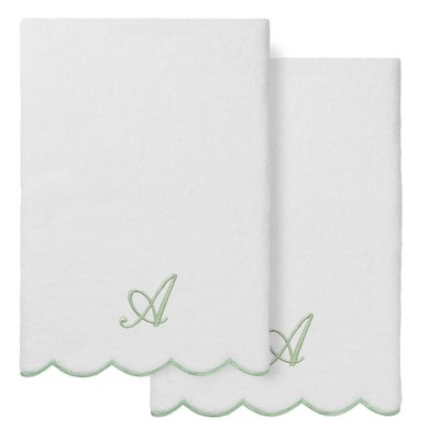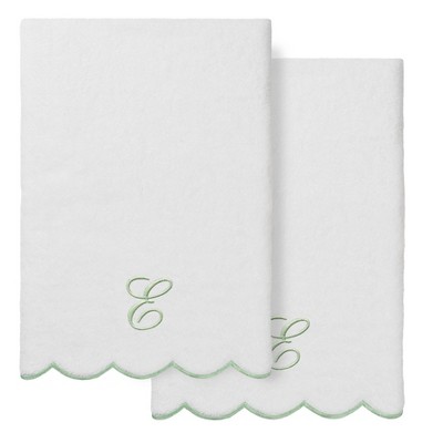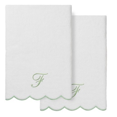 Linum Home Textiles 100% Turkish Cotton ADORNIA Scallop Personalized Towel Collection - Green