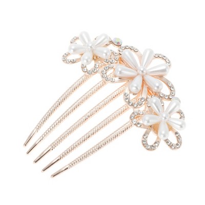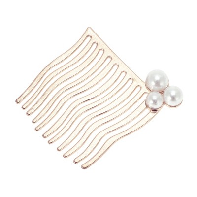 Unique Bargains Women's Three Pearls Side Comb Gold Tone 1 Pc