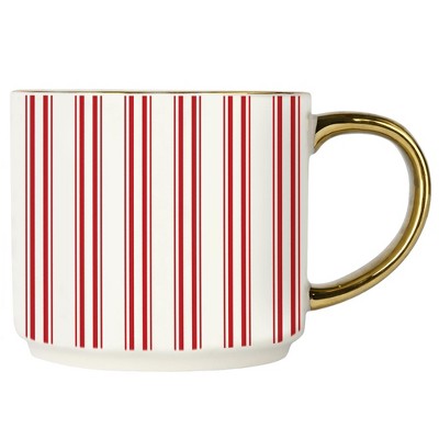 Red Plaid 14oz. Gold Handle Coffee Mug