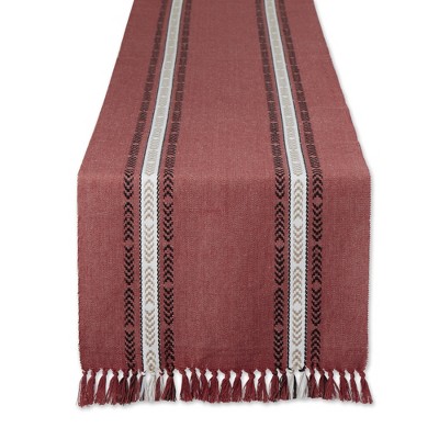 Design Imports Dobby Striped Fringe Ribbed Table Runner