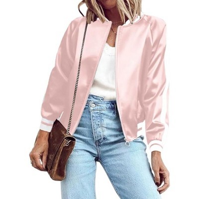 Clearlove Womens 2025 Fall Elegant Patchwork Long Sleeve Baseball Collar Jacket Coat - Apricot,X Large
