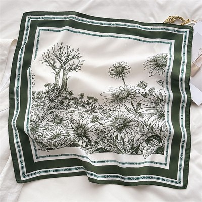 Anna-Kaci Satin Square Scarf with Elegant Floral Print for Neck Hair and Handbag Accessory - 27.5IN×27.5IN