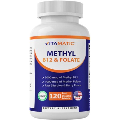 Methyl Folate & B12 Supplement with Pyridoxal 5 Phosphate 120 Fast Dissolve Tablets