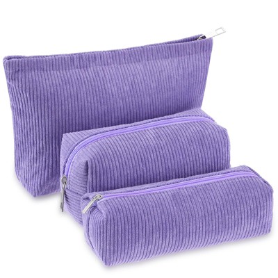 Narwey 3 Pcs Makeup Bag Set for Women Corduroy Cosmetic Pouch Aesthetic Smile Travel Toiletry Bag