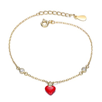 Guili 14K Gold Plated with Red Enamel Heart & Clear Cubic Zirconia Bracelet