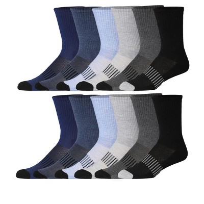 JAMES FIALLO Men's 12 Pairs Black/Navy Verity Colors Comfortable Performance Cushion Crew Socks for Running, Hiking, and Athletic Activities