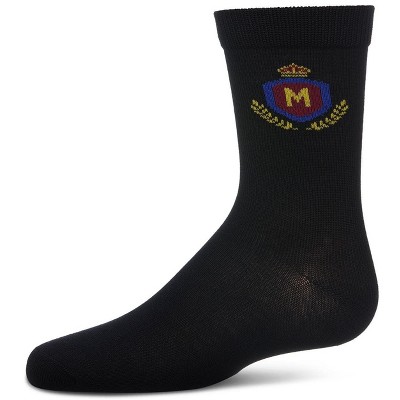 Memoi Boys Stitched M Crest Solid Color Dress Crew Socks
