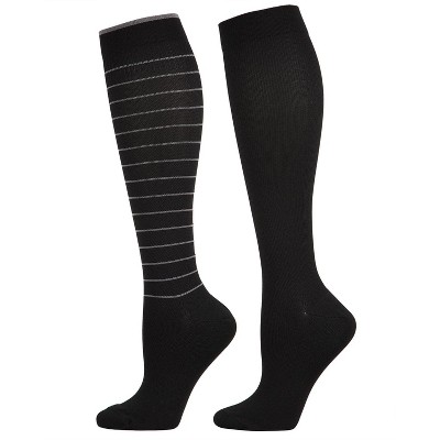 Wellfit Women's 2 Pair Pack Multi Striped Graduated Compression Socks Black-Black 9-11