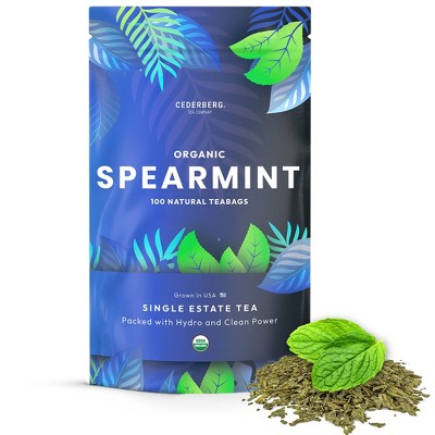 Cederberg Tea Company Spearmint Herbal Tea, USDA Organic, Non-GMO, Eco-Friendly and Caffeine Free - 100 Compostable Tea Bags