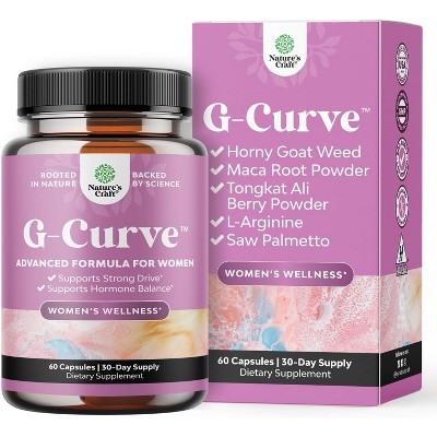 Women's G-Curve Breast & Butt Enhancer Capsules, Supplement with Horny Goat Weed for Hormone Balance, Saw Palmetto & L-Arginine, Nature's Craft, 60ct