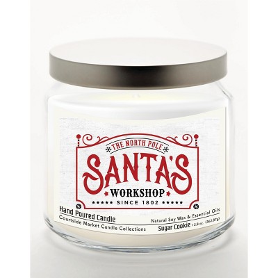 Courtside Market Christmas Night Sugar Plum 12.8oz Soy Wax Candle Glass Jar with Brushed Silver Metal Lid