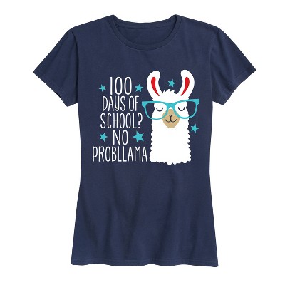 Women's - Instant Message - 100 Days Of School No Probllama Teacher Shirt Short Sleeve Graphic T-Shirt