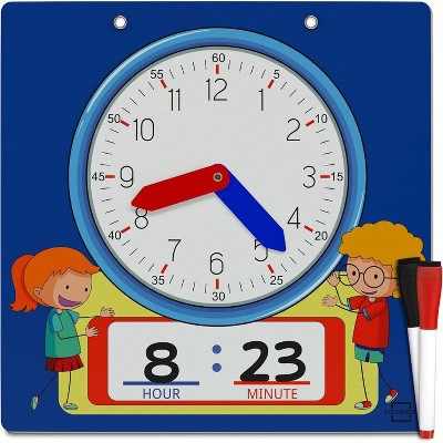 SCRIBBLEDO Learning Clock 13"x13" Dry Erase Write & Wipe Demonstration Clock w 2 Markers Included