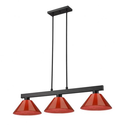 37.5" 3-Light Avery Industrial Farmhouse Rustic Iron/Glass LED Pendant Oil Rubbed Bronze/Clear - JONATHAN Y: UL Listed, Adjustable Height