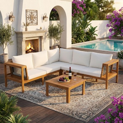 teak l-shaped sofa