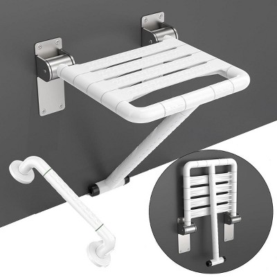 Munzong Wall Mounted Folding Shower Seat with Assist Grab Bar in White