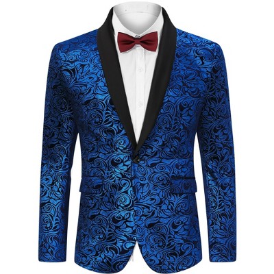 Coolmee Men's Floral Tuxedo Jacket Jacquard Suit Jacket One Button Slim Fit Blazer